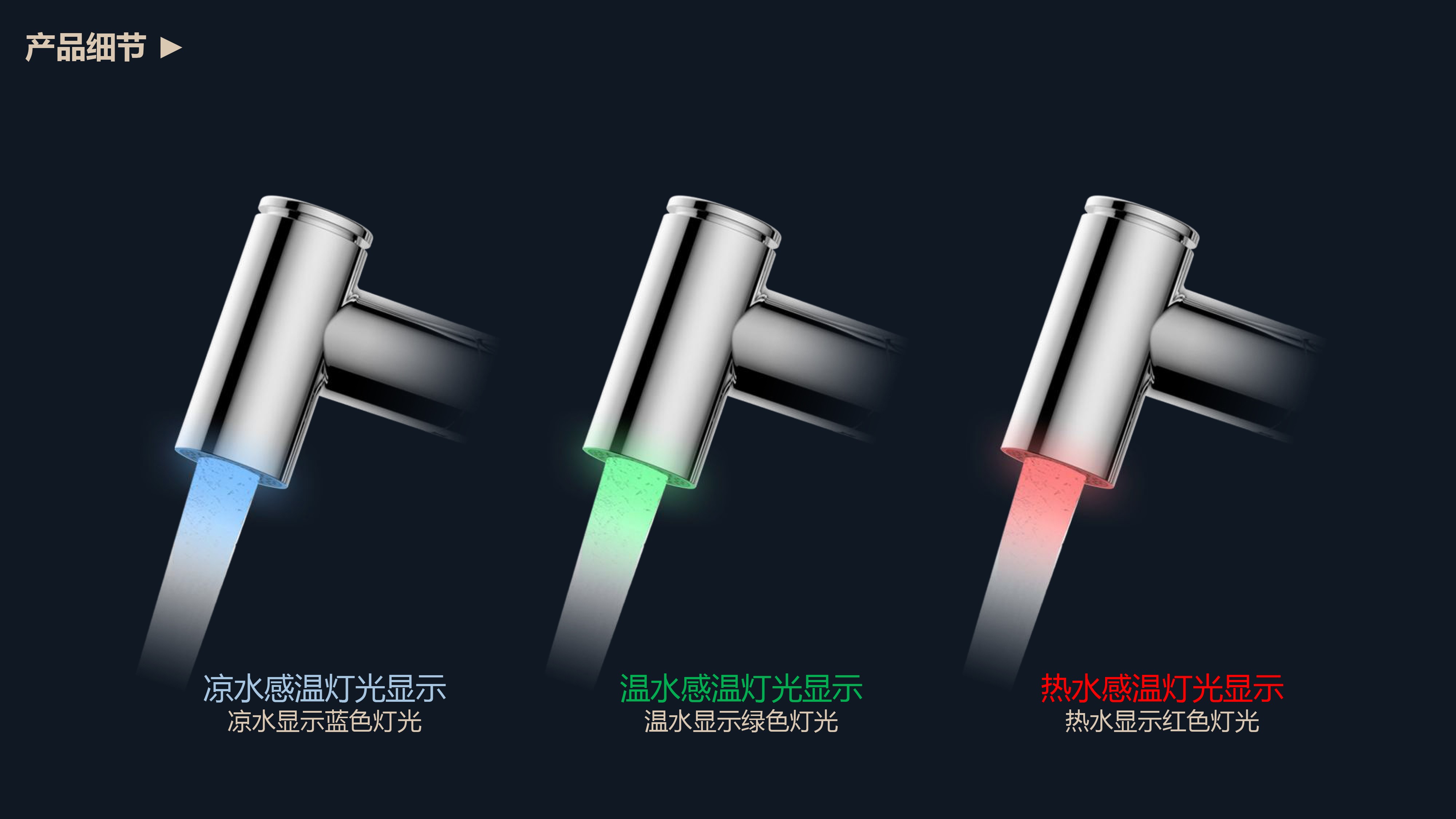 360°全方位抽拉清洗;微光龍頭,深夜使用不開大燈,不刺眼;日常洗頭利器,抽拉出水輕松洗;按壓切換兩功能水花;三種顏色LED燈光顯示水溫;重力錘復(fù)位設(shè)計(jì),順暢伸縮,精準(zhǔn)回位;無(wú)需工具,一推一擰10秒快裝